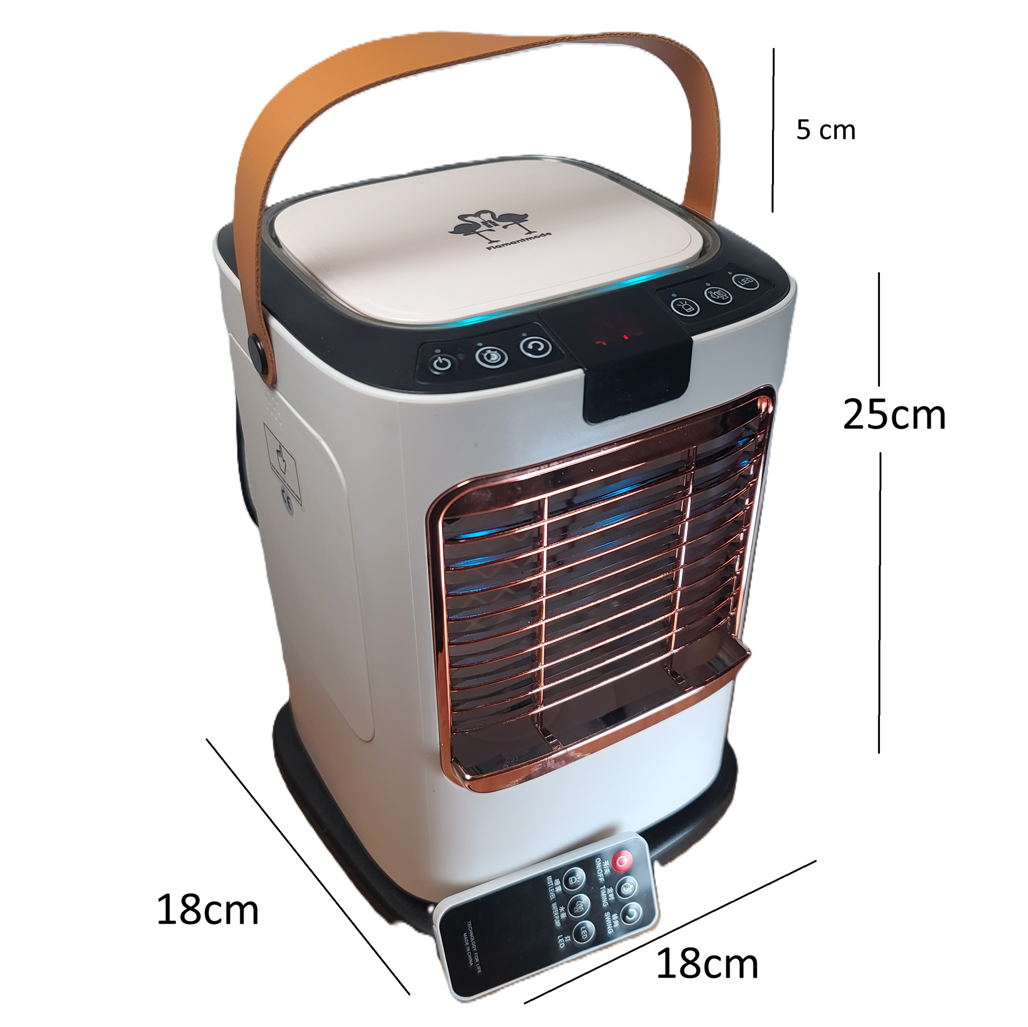Pour pièce jusqu’à 21m². Avec rideau d’eau, double pulvérisation de rafraîchissement (brume/brouillard) et bouton de pompe de refroidissement.